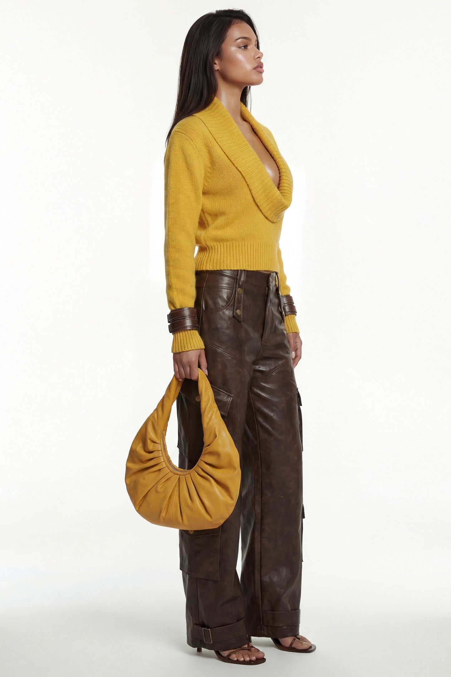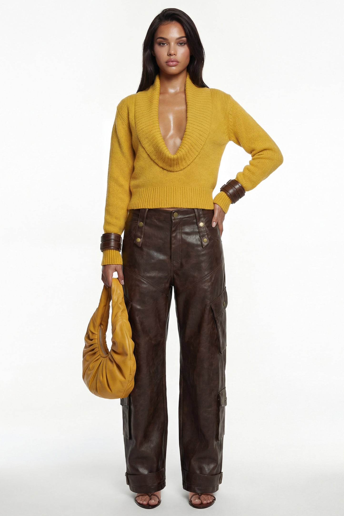 Deep plunge neckline.