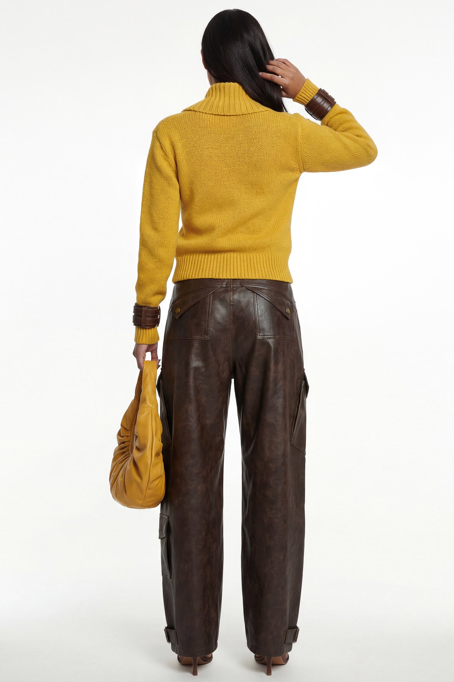 Rib knit detailing at the hem and cuffs.