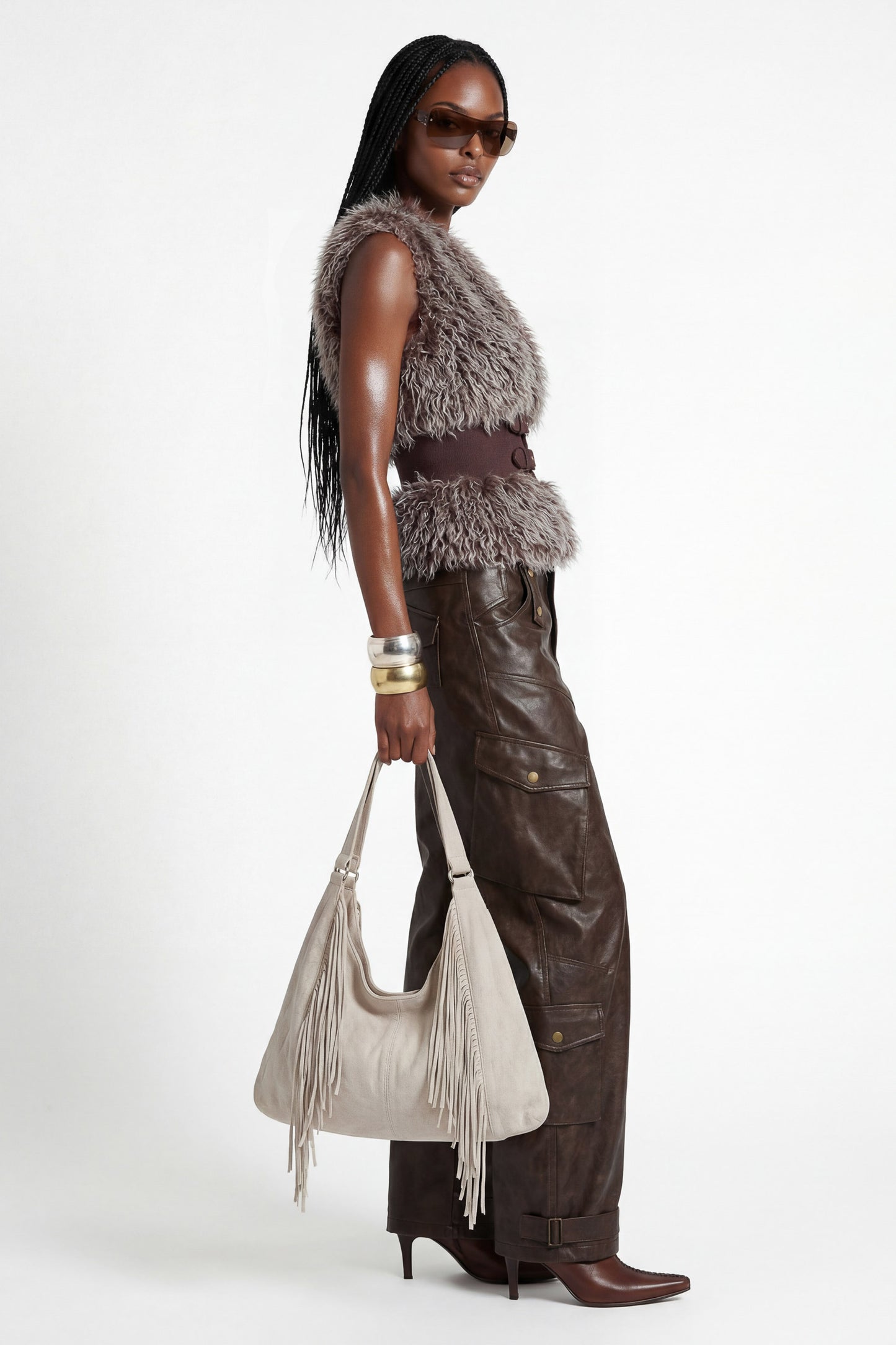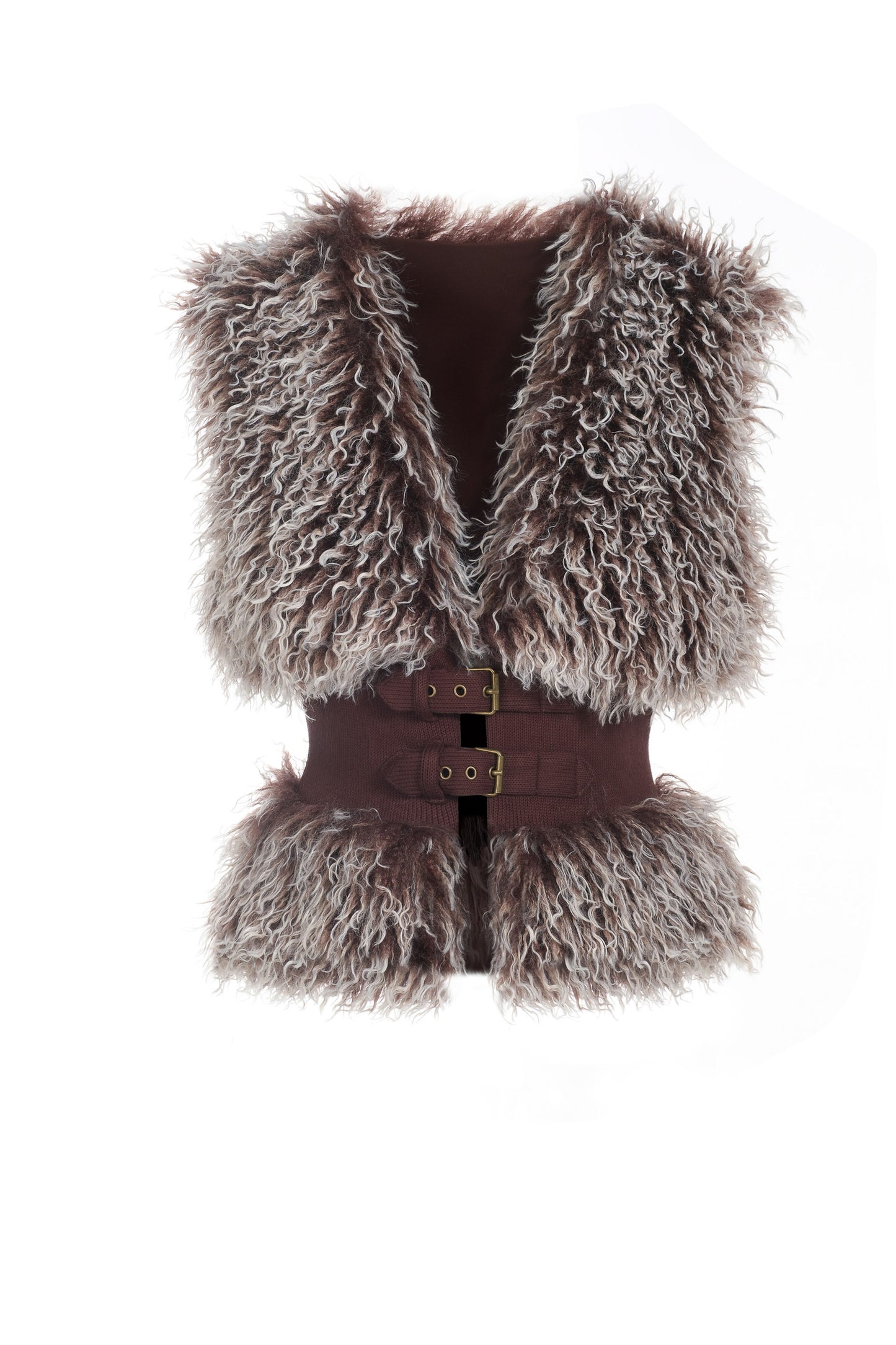 Textured curly faux Mongolian fur construction.